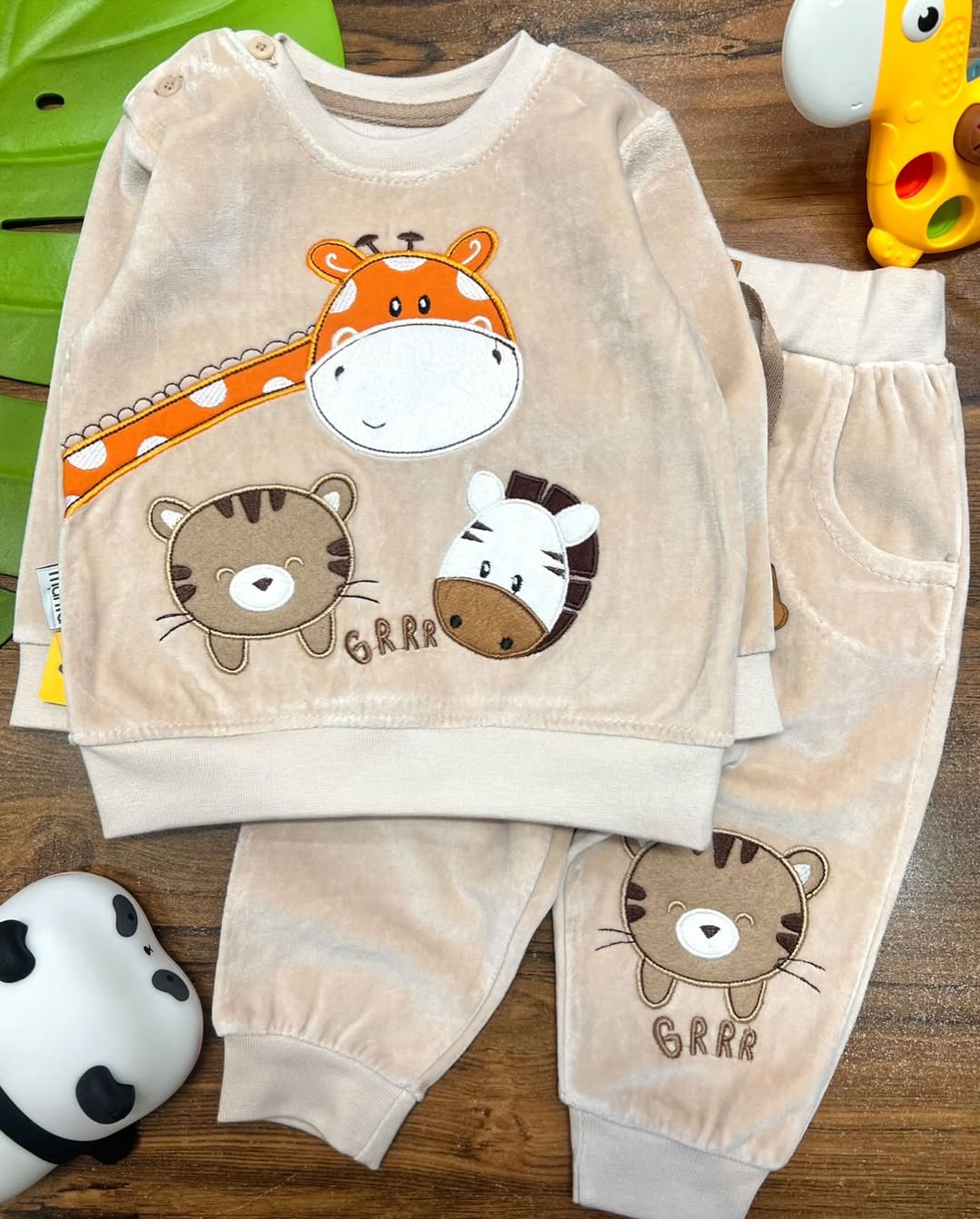 بلوز شلوار طرح زرافه و دوستان سایز ۹۱۲ ماه
