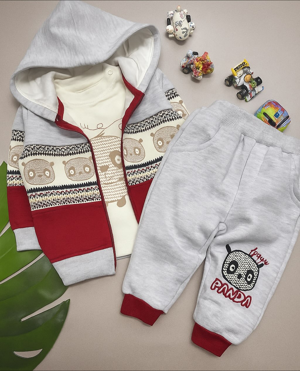 ست سهتکه سویشرت دورس و شلوار مناسب نوزاد ۹ تا ۲۴ ماه