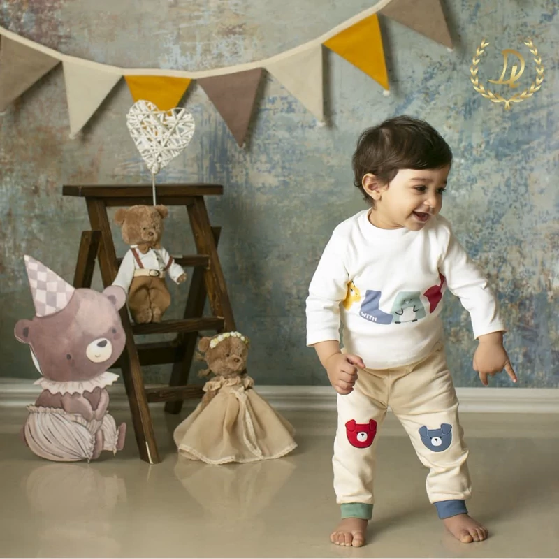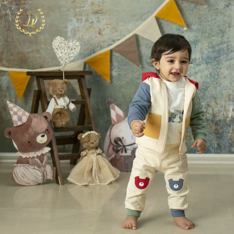 ست سه تیکه خرس رنگی دانالو ✅️سایز 3_6/6_9/9_12ماه ✅️جنس سویشرت و شلوار دورس /بلوز نخ پنبه ✅️سرشونه دکمه دار جهت سهولت در استفاده
