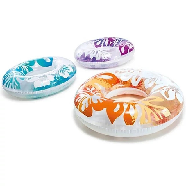 حلقه شنا بادی طرح دار نارنجی یکی از جذاب ترین و زیبا ترین مجموعه محصولات بادی اینتکس با رنگ آمیزی فوق العاده، خاص و با داشتن طراحی جذاب به صورت رنگی که جلوه و زیبایی این محصول را چند برابر کرده، تولید شده است. این حلقه شنا با طراحی منحصر به فرد دارای ارتفاع و حجم مناسبی بوده که قابل استفاده برای تمامی افراد می باشد که تحمل وزن مناسبی داشته و بیشتر قابل استفاده کودک و نوجوان و خانوم ها بوده است. این حلقه شنا بادی دارای دو رنگ بدنه زیبا با طراحی برگ گل بوده که توجه هر بیننده ای را به خود جلب می نماید و می تواند بر روی آب جذابیت بی نظیری را ایجاد نماید. این شناور بادی برای تفریحات آبی و مناسب شنا بوده که به صورت گرد و تو خالی طراحی شده است که از بدنه ای زیبا و با کیفیت بهره می برد. حلقه بادی گرد با رنگ های جذاب دارای طراحی گل های رنگی و زیبا یکی از لوازم شنا و تفریحات آبی با زیبایی خاص بوده است.