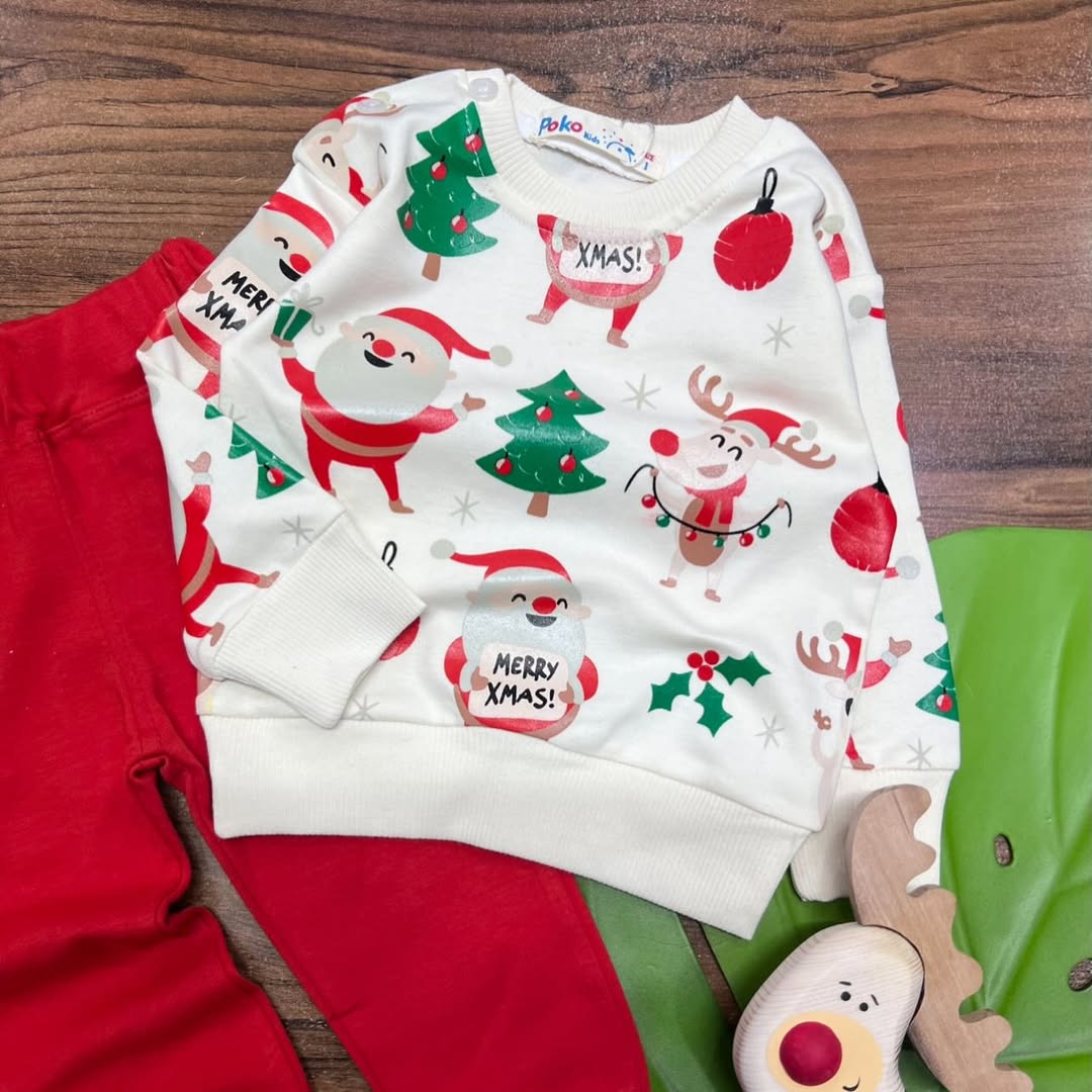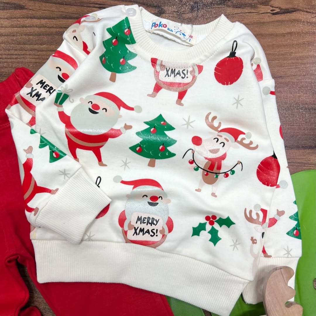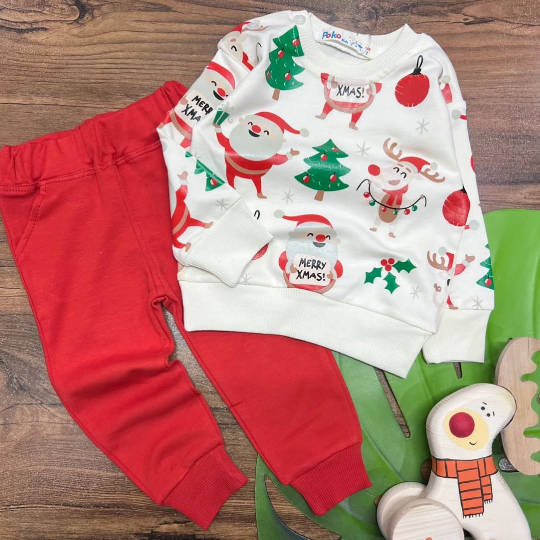 بلوز شلوار نخی‌پنبه‌ای طرح بابانوئل (کریسمس) سایز ۳–۶ ماه