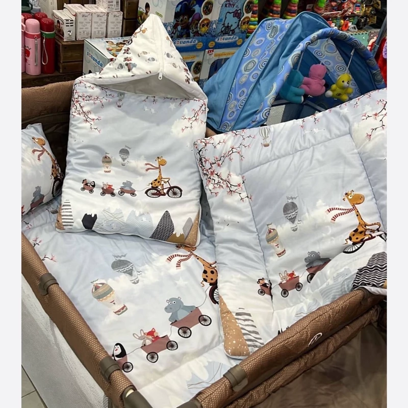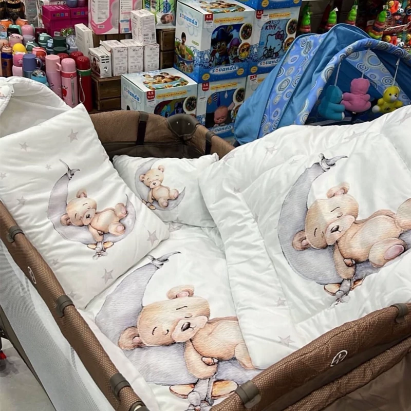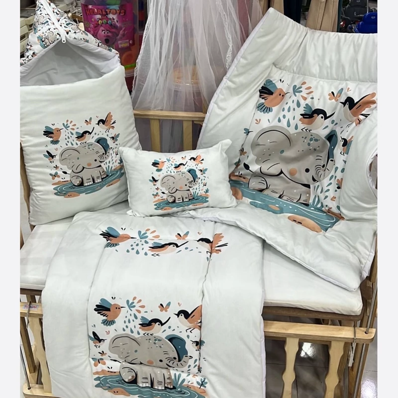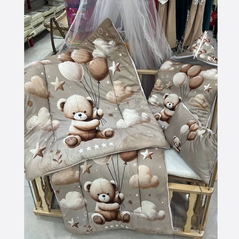 سرویس خواب چاپی کودک 4 تکه مخمل پورش درجه یک الیتف ضد حستسیت شامل: لحاف، تشک، بالشت و قنداق فرنگی ابعاد لحاف: 90*75